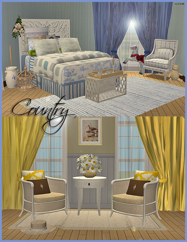 Country style interior design is often a mesh of English, French, and American country decor. To create an optimal country interior design theme, combine all three styles together. This can be done by collecting various items from estate sales and antique markets. All three design types frequently include antiques.